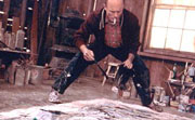 ◆試写状の写真を見たとき、真っ先に浮かんだのが、ジャクソン・ポロックの写真から刷り込まれた記憶だった。次にタイトルを見て破顔一笑。写真のはげ頭の男がエド・ハリスであることに気づき、大笑い。それほど構図的には似ている。エド・ハリスは、長年ポロックの映画の構想を練ってきたらしい。監督・主演するだけ熱が入っている。ペインティング・コーチにクーパー・ユニオンの教員・画家のリサ・ローリー(Lisa Lawley)がなり、映画に登場する1947年以後のポロックの作品をコピーし、ハリスの筆さばきの指導もしているというが、ハリスの腕もなかなかのもの。ビートたけしも片岡鶴太郎も、役者はみんな達者だね。