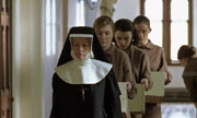 ◆シスター・ブリジット(ジェラルディン・マクイーン)は非情だが、ありがちなイジメ屋的には表現されていない。むろん皮肉をこめてだが、『聖メリーの鐘』(The Bells of St. Marry's)を見てほろほろ泣くような「純真さ」の持ち主でもある。それよりも、色気たっぷりだったり、ブス(失礼)でいかにも「刑吏」タイプとか、いくつかのタイプのシスターの組み合わせが、こういう組織に必要なメンツの型をあらわしていて面白い。