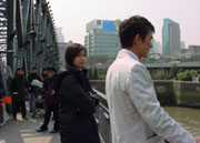 ◆会社は、中国語のトレーニングのために大学に依頼して研修プログラムを組んでいる。そのチューターがファン(ドン・ジェ)。不思議なことに、早瀬がいやいや大学に行くと、教わるのは彼だけ。そして、ファンが急速に早瀬に関心を持ちはじめる。ここで予想がつくのは、たぶん彼女は、ファンの妹なのだろうということだ。そして、その結果、早瀬は、2人の姉妹の板ばさみになるだろう。このへんは、ティエン・チャンチュアンの『春の惑い』でも見ることができるパターンである。