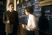 ◆そうだとすると、前言をひるがえすようでナンだが、この映画は、ブッシュのような人間を生み出してしまうスステムそのものへの異議を歴史をさかのぼって暗黙に批判しているともとれる。時代設定は1976年、場所は、ニューヨーク郊外の有名校。ならば、保守的なのは当然だ。そして、その時代をウィリアムが25年後に回想するという形式をとっているのだから、あまり単純には受け取らないほうがいいだろう。問題の生徒セジウィック(エミール・ハーシュ)は、ベル上院議員(ハリス・ユーリン)のわがまま息子であり、ウィリアムのクラスに転入して来て、ウィリアムの手を焼かせる。他の生徒もセジウィックになびき、混乱状態になる。それをウィリアムがどう収拾していくかが、一つのドラマだが、反抗をくり返したのち、まるで人格が変わったかのように、セジウィックは勉強をするようになる。そして、「ジュリアス・シーザー・コンテスト」の最終決勝の3人の一人に残る。が、コンテストで彼は、父親ゆずりの策略をろうする。